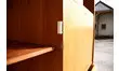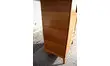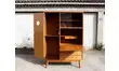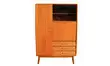 Charmante armoire vintage, pieds compas. Elle est composée d'une partie penderie, de trois tiroirs de rangements, d'un espace secrétaire et d'une étagère. Pratique, vintage et robuste, cette armoire en bois est idéal pour une chambre!