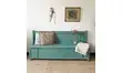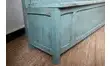 Coup de cœur pour ce banc artisanal de la fin du XIXe. En bois massif, c’est une pièce qualitative et unique dont le bleu vibrant nous rappelle les étoffes Indiennes. Le dossier comporte un panneau sur lequel sont sculptés des motifs floraux mis en valeurs par une patine dorée. On l’imagine dans une entrée en tant que coffre à chaussures, dans une cuisine autour d’une table à manger…
