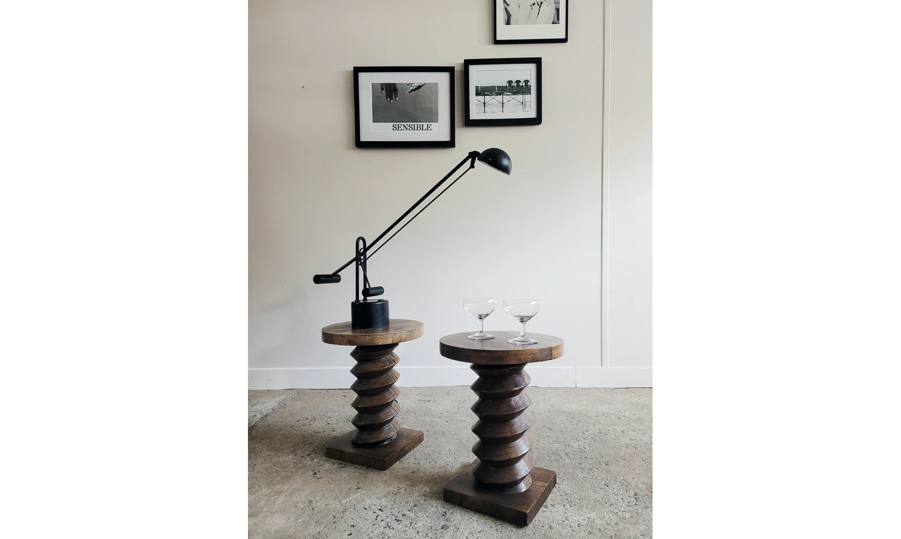 Coup de cœur de Bits and Bobs pour ces bouts de canapé en forme de vis géantes. Mêlant le style brutaliste et artianal, ces deux pièces iconiques sont sculptées en bois massif. Elles sont idéales pour apporter du contraste dans un intérieur aux notes contemporaines.