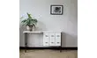 Joli buffet blanc, à tiroirs, idéal dans un petit appartement. Original, pratique et sobre.