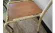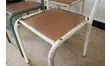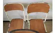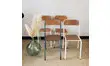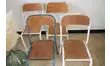 Lot de quatre chaises métalliques vintage. On aime le côté chaises d'écoliers, leurs couleurs passées par le temps...