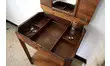 Ce joli petit meuble d'appoint, en bois massif, recouvert d'un plaquage de qualité, peut faire office de guéridon, mais était à l'origine une petite coiffeuse.