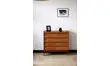 Pratique avec ses quatre tiroirs aux poignées en laiton doré, ce meuble est également une pièce classique du mobilier vintage.