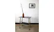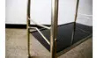 Jolie desserte vintage constituée d'une structure métallique dorée, et de plateaux en verre fumé noir.