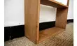 En bois massif, elle a été poncée puis protégée par deux couches de vernis teinté.