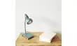Petite lampe d’atelier Pierron sur pied. Son bleu métallisé accentue son côté ancien. Aujourd’hui, Bits and Bobs vous la propose en lampe de chevet de caractère.