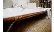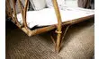 On aime les courbes de ce lit en rotin. Sobre et vintage, il est idéal dans une chambre d'enfant ou comme ici, détourné en banquette, dans le salon ou sur une mezzanine.