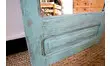 Ancienne porte, ce joli miroir a été restauré par nos soins : poncé, patiné d'un beau bleu puis verni. On aime le côté détourné de cette porte et son utilité! Idéal dans une chambre ou une entrée.