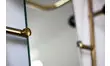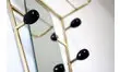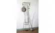 Ce superbe porte-manteaux vintage est en métal doré. Il se compose d’un porte-chapeaux sur la partie supérieure, de 4 patères en bakélite noire et d’une tablette pose-parapluies en bas.