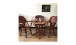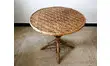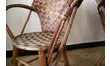 Superbe salon de jardin en châtaignier et rotin, composé d'une table et de trois fauteuils.
