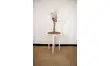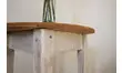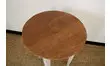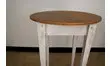 Petite desserte ronde, en bois. On aime son style patiné, un petit côté "shabby chic". Parfaite dans une entrée ou une chambre.