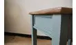Charmante table d’appoint en bois pouvant également servir de petit bureau. On aime ce vert, son petit quelque chose « à l’Anglaise », sa patine. On l’image près d’une fenêtre avec une vue sur les toits…