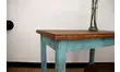 Coup de cœur pour cette couleur printanière, un bleu-vert qui a du pep's! On aime le contraste entre le bois et la peinture, qui nous rappelle des teintes présentent dans la nature. En table à manger ou en bureau, cette table invite à la rêverie....