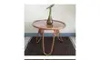 Très bon état, malgré une légère pente du plateau qui ne gêne en rien l'utilisation de la table, ni sa stabilité!