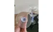Le pied représente une figure féminine en verre dépoli d’un bleu « givré » velours, le calice est quant à lui en verre cristallin.
