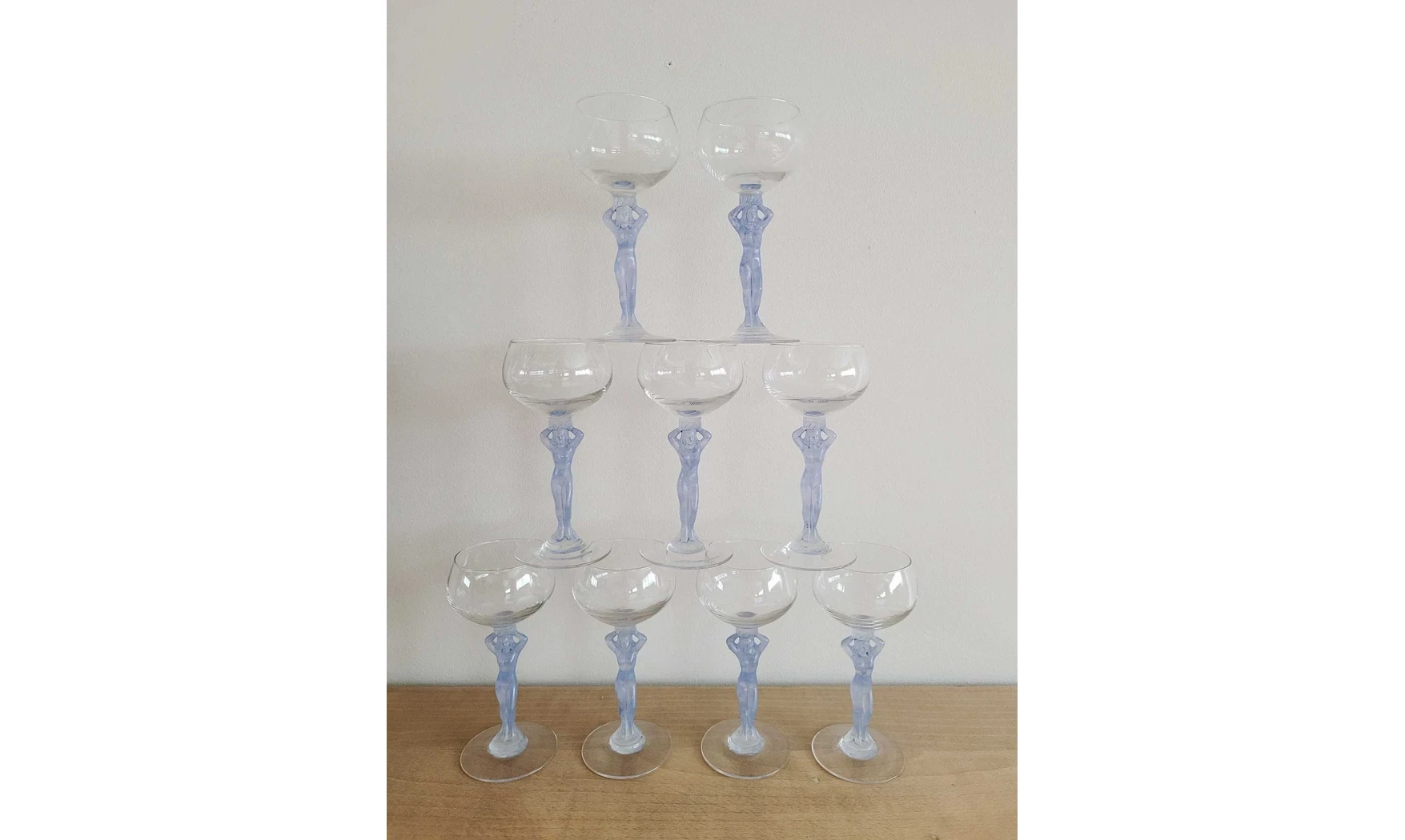 Voici neuf verres de la célèbre série « Vénus » de la cristallerie de Bayel, en France.
